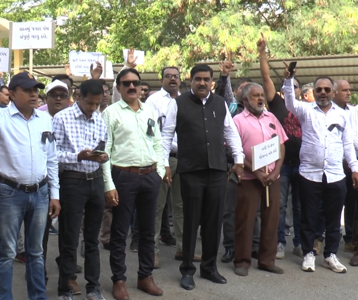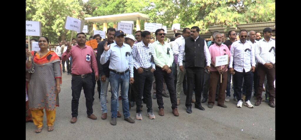 જામનગર શહેર અને જિલ્લામાં શિક્ષકો અને આરોગ્યકર્મચારીઓની વિવિધ પડતર માંગણીઓ લઇને આજે બન્નેના કર્મચારીઓ દ્વારા સર્કિટ હાઉસ ખાતે વિરોધ પ્રદર્શન કરી જૂની પેન્શન યોજના ચાલુ કરવા કાળી પટ્ટી બાંધવા સૂત્રોચ્ચાર કર્યા હતાં.